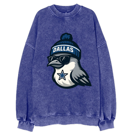 Dallas Mockingbird wearing Cowboys beanie with sheriff star and wayfarer - Vintage Sweatshirt