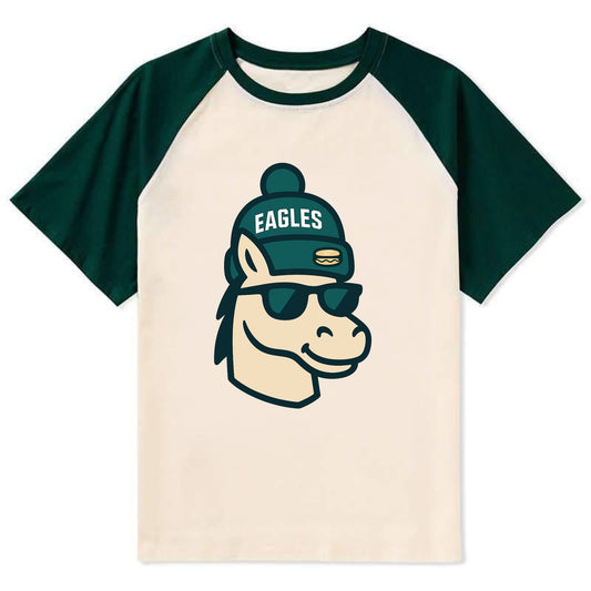 Philadelphia Horse wearing Eagles beanie with cheesesteak patch and - Contrast Raglan T-shirt