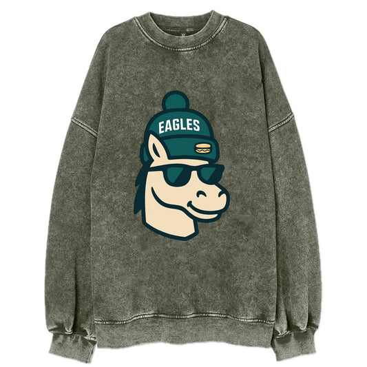 Philadelphia Horse wearing Eagles beanie with cheesesteak patch and wayfarer - Vintage Sweatshirt