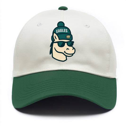 Philadelphia Horse wearing Eagles beanie with cheesesteak patch and wayfarer - Two Tone Cap