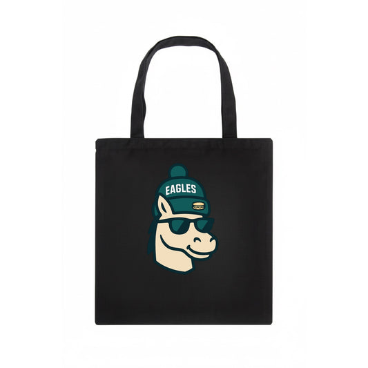 Philadelphia Horse wearing Eagles beanie with cheesesteak patch and wayfarer sunglasses - Tote Bag