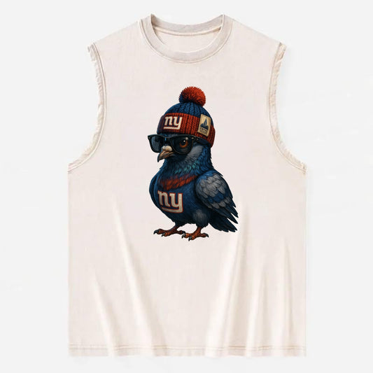 Manhattan Pigeon wearing Giants beanie with Empire State patch and wayfarer - Vintage Washed Tank