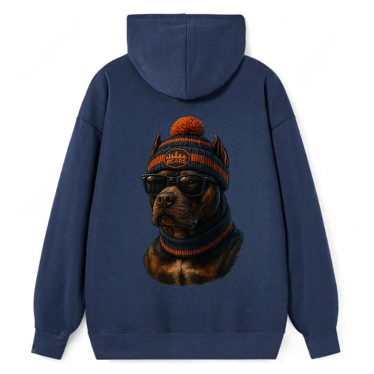 Chicago Pitbull wearing Bears beanie with skyline patch and wayfarer - Classic Pullover Hoodie