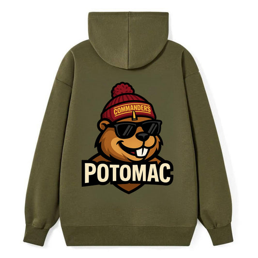 Potomac Beaver wearing Commanders beanie with monument patch and wayfarer - Classic Pullover Hoodie