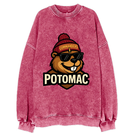 Potomac Beaver wearing Commanders beanie with monument patch and wayfarer - Vintage Sweatshirt
