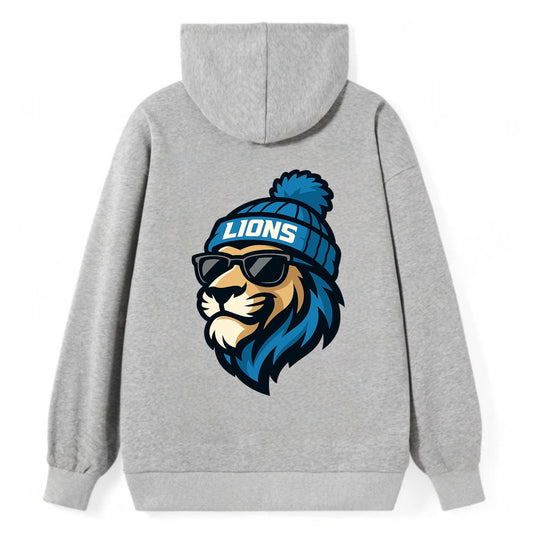 Detroit Lion wearing Lions Honolulu blue and silver beanie with pom pom - Classic Pullover Hoodie