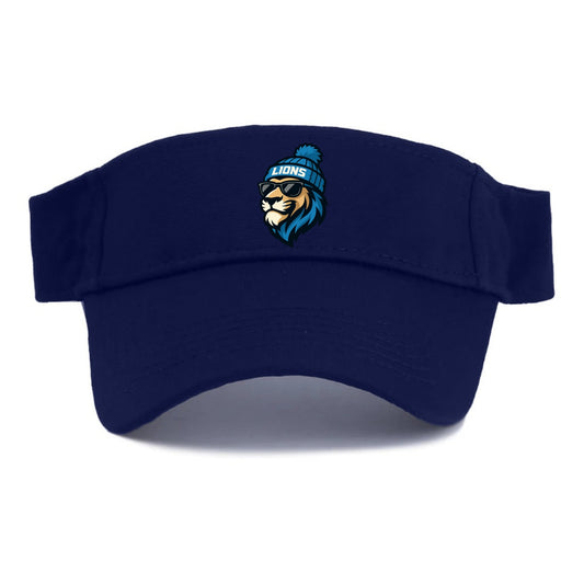 Detroit Lion wearing Lions Honolulu blue and silver beanie with pom pom and wayfarer - Visor