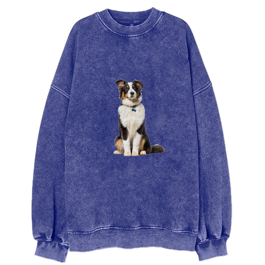 Attentive Australian Shepherd Sitting Upright Vintage Sweatshirt