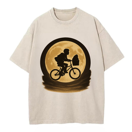 boy with bicycle flying across full moon with silhouette - Vintage T-shirt