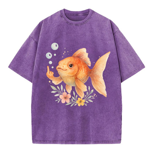 chubby goldfish blowing bubbles, one fin extended like middle finger - Vintage T-shirt