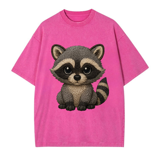 Baby Raccoon - gray fur, black mask, ringed tail, bright curious eyes, - Vintage T-shirt