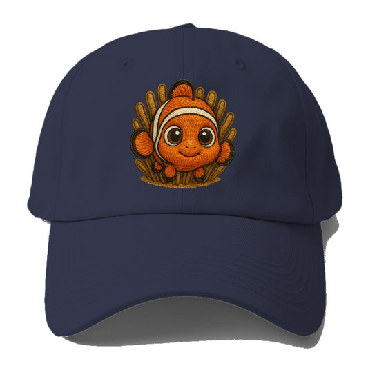 Baby Clownfish - orange with white stripes, big round eyes, - Baseball Cap For Big Heads