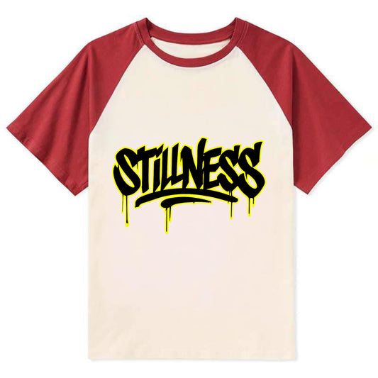 Bold typography design - STILLNESS - quiet power, peaceful presence - Contrast Raglan T-shirt