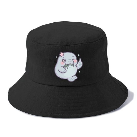 chubby manatee munching on seagrass, one flipper raised with sass - Bucket Hat