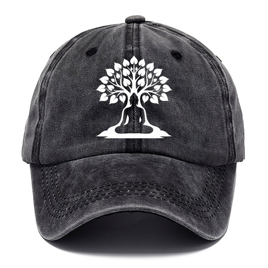 Buddha silhouette meditating - negative space forms bodhi tree - Classic Cap