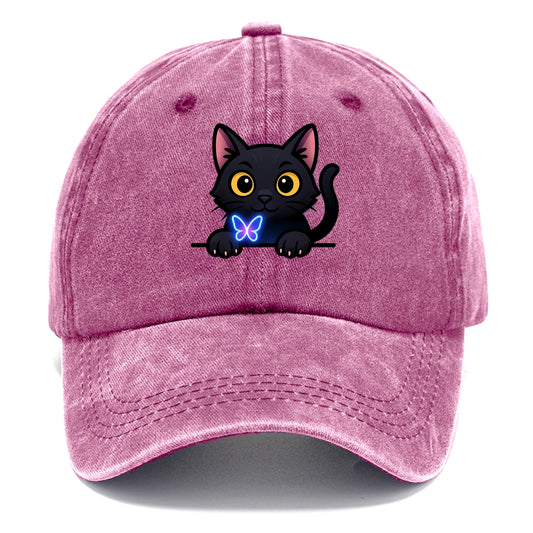 Midnight the black cat blowing a glossy bubblegum bubble while peeking. - Classic Cap