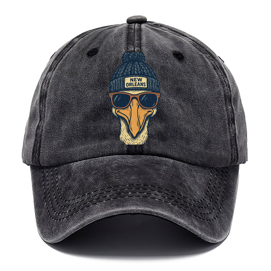 New Orleans Pelican wearing New Orleans beanie with pom pom and wayfarer sunglasses - Classic Cap