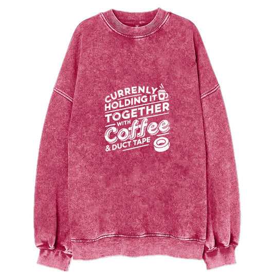 Sudadera vintage "Actualmente lo sostengo junto con café y cinta adhesiva"