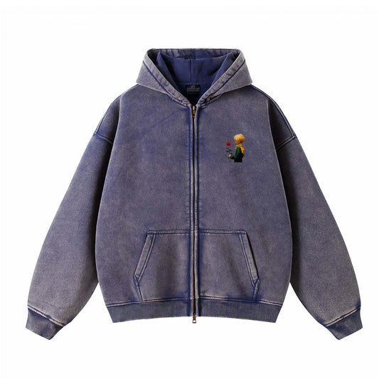 Sudadera con capucha y cremallera de algodón vintage Nostalgic Rose Wonder