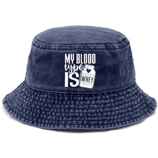 Mi tipo de sangre es suero de leche. Sombrero de pescador vintage.