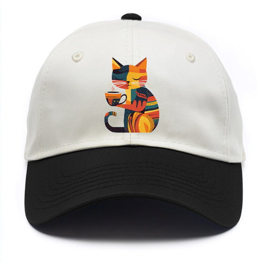 Gorra bicolor con diseño geométrico de gato en pensamiento