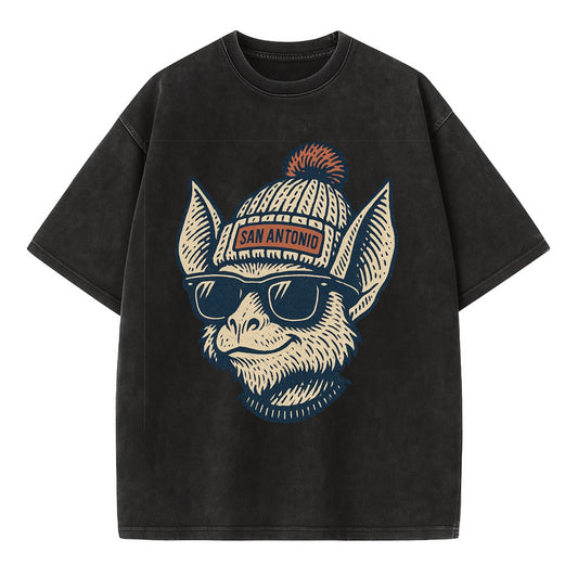 San Antonio Bat wearing San Antonio beanie with pom pom and wayfarer sunglasses - Vintage T-shirt
