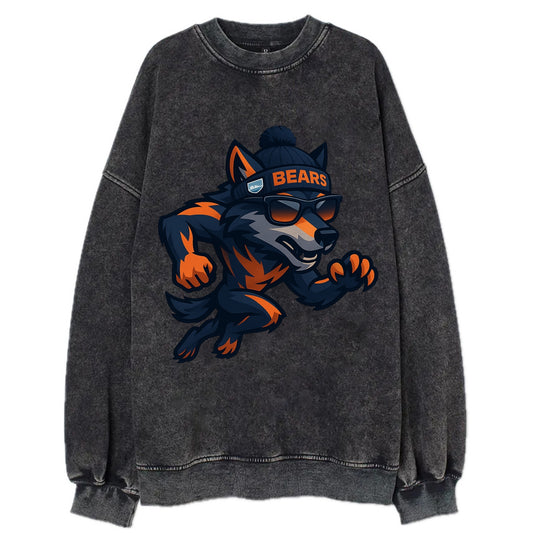 Chicago Wolf wearing Bears beanie with Lake Michigan patch and wayfarer - Vintage Sweatshirt