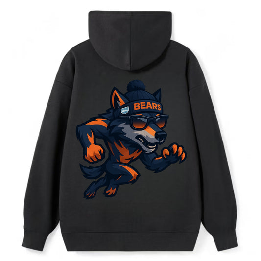 Chicago Wolf wearing Bears beanie with Lake Michigan patch and wayfarer - Classic Pullover Hoodie
