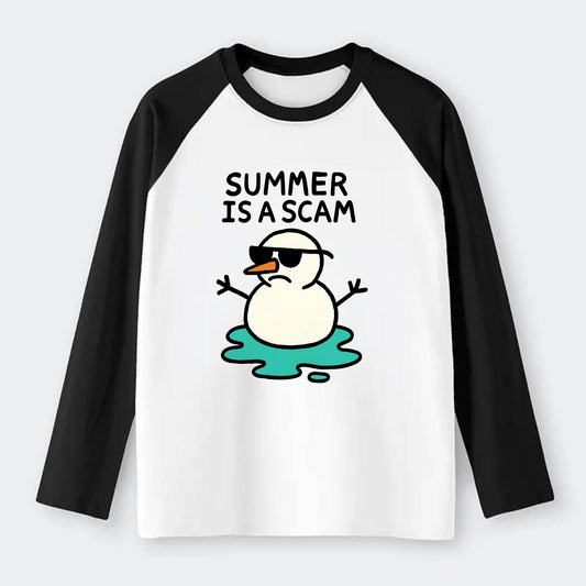 SUMMER IS A SCAM | Melting snowman in sunglasses - Raglan Long Sleeve T-Shirt
