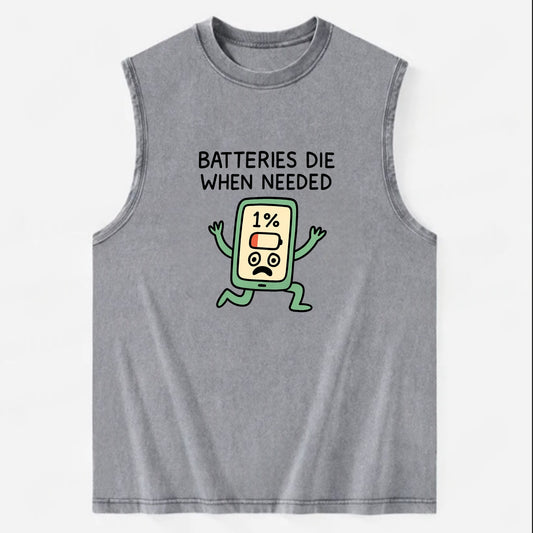 BATTERIES DIE WHEN NEEDED | Phone at 1% panicking - Vintage Washed Tank