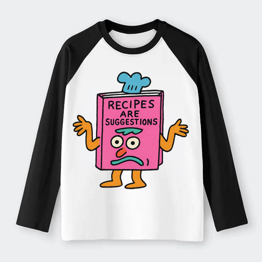 RECIPES ARE SUGGESTIONS | Cookbook shrugging - Raglan Long Sleeve T-Shirt