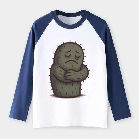 SINGLE IS VALID | Content cactus hugging itself - - Contrast Raglan T-shirt