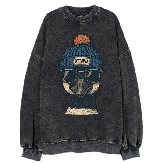Ottawa Canadian Goose wearing Ottawa bea - Vintage Sweatshirt