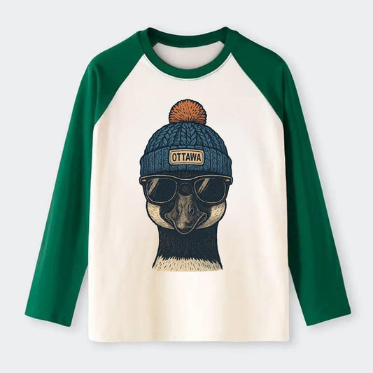 Ottawa Canadian Goose wearing Ottawa bea - Raglan Long Sleeve T-Shirt