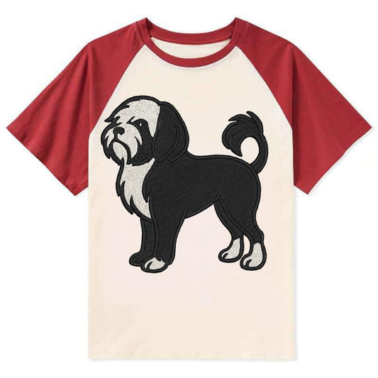 Löwchen - Black and white lion trim embr - Contrast Raglan T-shirt