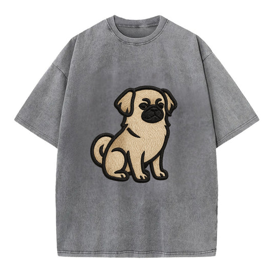 Tibetan Spaniel - Fawn small dog embroid - Vintage T-shirt