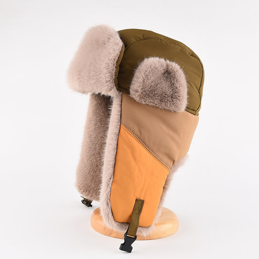 Warm Spliced Lei Feng Hat - Windproof Plush Ear Protection