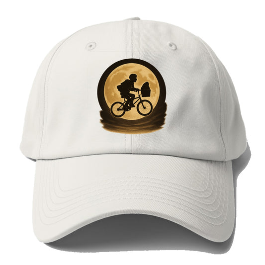 boy with bicycle flying across full moon with silhouette - Baseball Cap For Big Heads