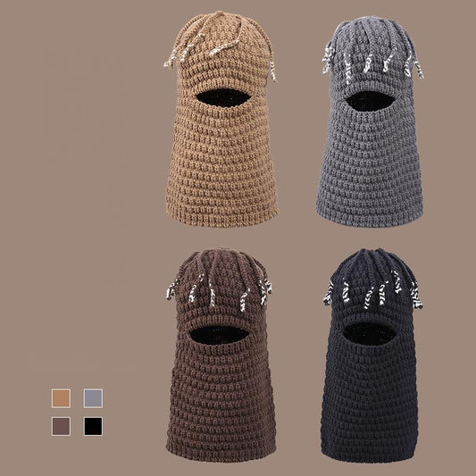 Unisex Knitted Beanie with Integrated Face Mask, Autumn Winter Ear-Warming Cap