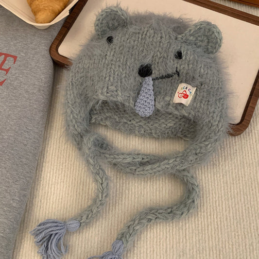 Women's Koala Ear Knitted Beanie, Autumn Winter Warm Ear-Warming Hat