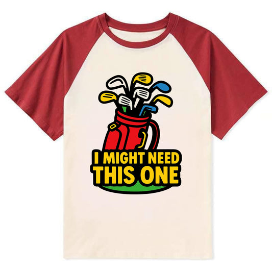Golf bag overflowing with too many clubs - I Might Need This One - gear - Contrast Raglan T-shirt