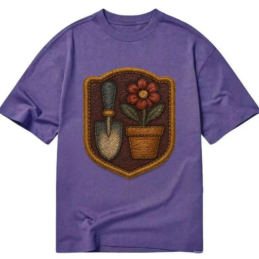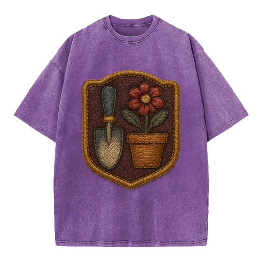Garden trowel with flower pot - gardener badge - Vintage T-shirt