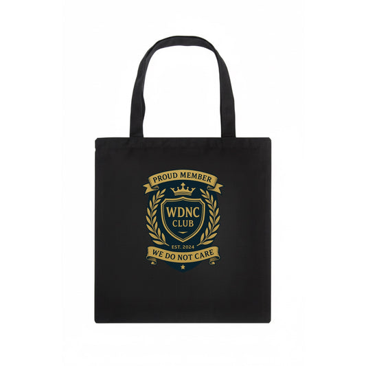 Proud Member badge with laurel wreath - WDNC CLUB - We Do Not Care - apathy pride - Tote Bag