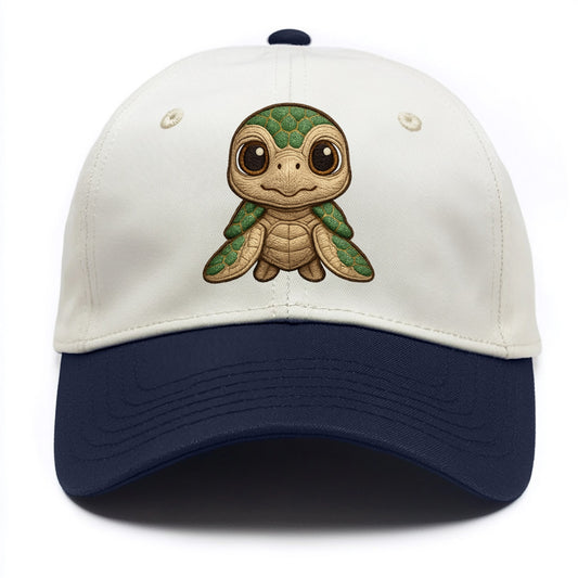 Baby Green Sea Turtle - emerald shell, large innocent brown eyes, tiny flippers, - Two Tone Cap