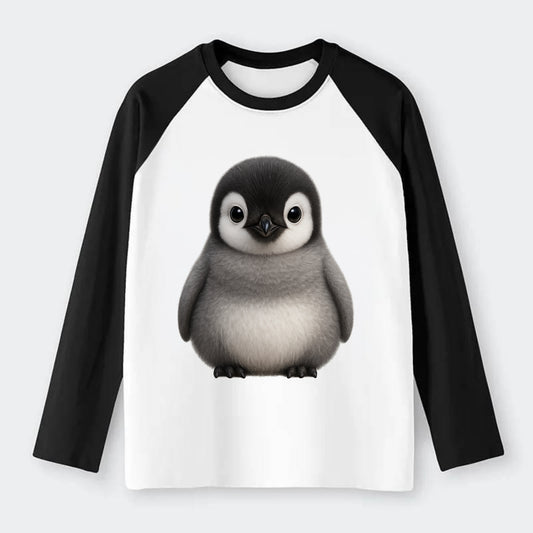 Baby Adelie Penguin - black and white, round body, curious eyes, - Raglan Long Sleeve T-Shirt