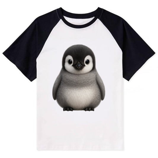 Baby Adelie Penguin - black and white, round body, curious eyes, - Contrast Raglan T-shirt