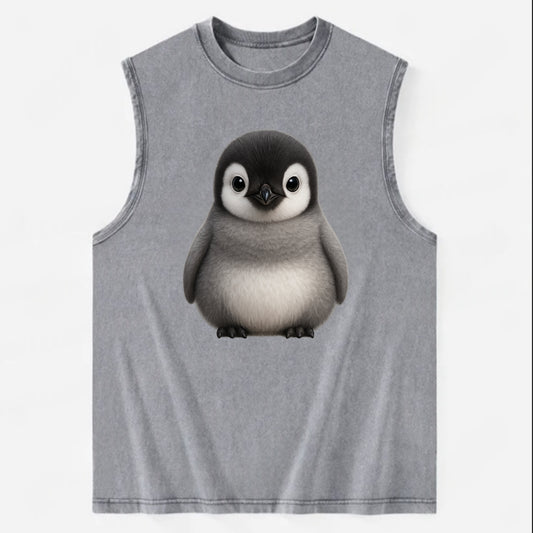 Baby Adelie Penguin - black and white, round body, curious eyes, - Vintage Washed Tank