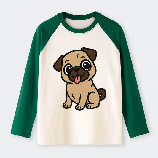Pug - Tilted head with tongue out - Raglan Long Sleeve T-Shirt
