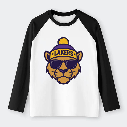 LA Mountain Lion wearing Lakers purple and gold beanie with championship - Contrast Raglan T-shirt