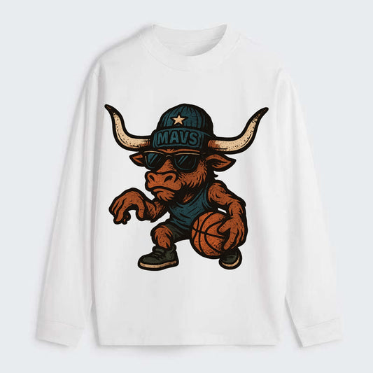Texas Longhorn wearing Mavs beanie with lone star patch and wayfarer sunglasses - Vintage Sweatshirt